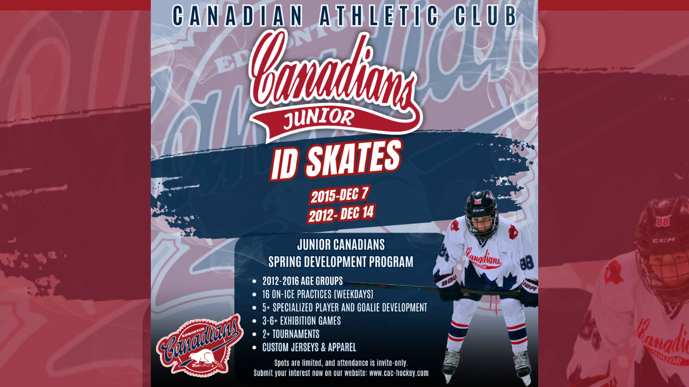 The Canadian Athletic Club is excited to invite elite players born 2012-2016 to showcase their skills at our Junior Canadians Spring ID Skates. The next skates will be for 2012 born players on Dec 14th and 2015 born players on Dec 7 .